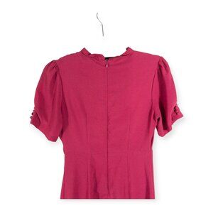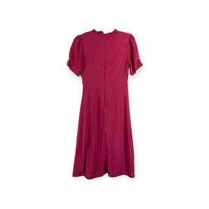 Lindy Bop dress, burgundy dress, vintage-style dress, retro midi dress, button detail dress, puff sleeve dress, back zipper dress, classic midi dress, soft fabric dress, Lindy Bop clothing, elegant vintage dress, vintage-inspired fashion, women's burgundy dress