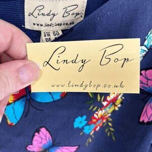 Lindy Bop Butterfly womens navy blue rainbow midi long sleeve new dress plus 4xl