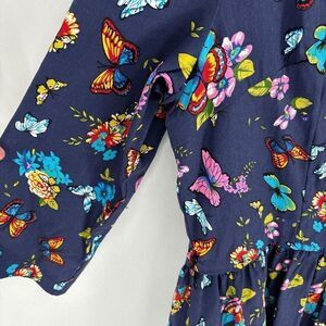 Lindy Bop Butterfly womens navy blue rainbow midi long sleeve new dress 4x