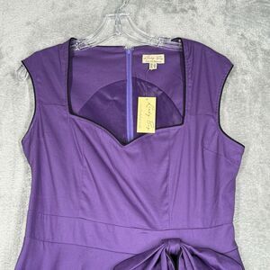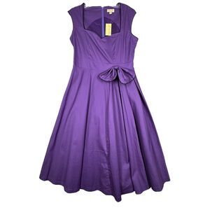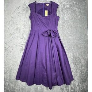 Lindy Bop Dress Womens Medium Purple Fit Flare Bow Feminine Rockabilly Retro