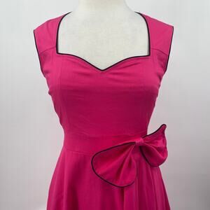 Lindy Bop Fit & Flare Midi Dress Sweetheart Neck Bow Waist Retro Pink NEW Medium
