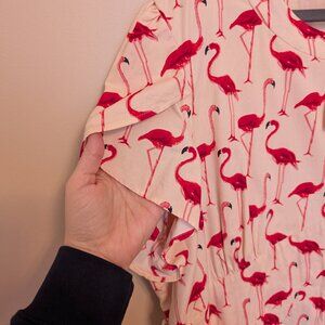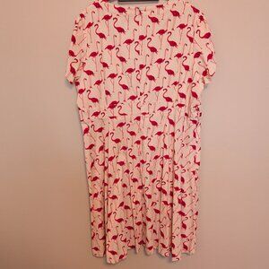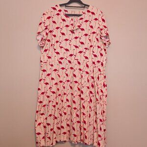 Charming midi dress by Lindy Bop. Features vibrant pink flamingo print on a cream background. Perfect for casual outings.