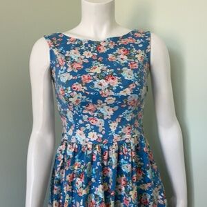 Lindy Bop Retro Audrey Blue Floral Dress Small