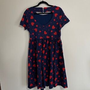 Lindy Bop Retro Short Sleeve Heart Print Swing Dress, Navy & Red, US 14
