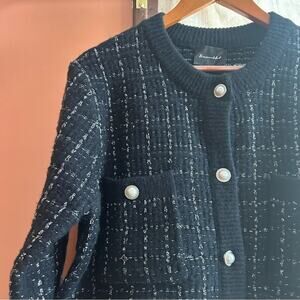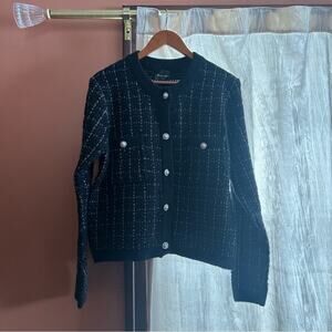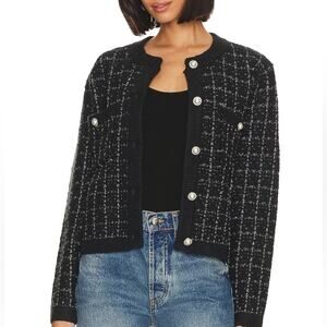 Line & Dot Alexis Sweater in Black & Silver Knit Jacket Buttons Cardigan NEW M