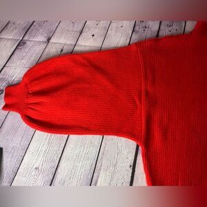 Line & Dot Anthro Adler Red Ribbed Sweater Mock Neck Balloon Sleeve Large L