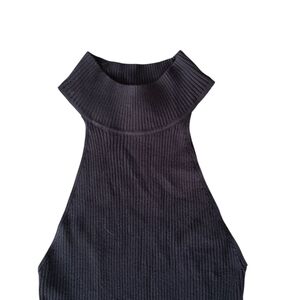 Line & Dot Black High Neck Tank Ribbed Midi Dress Medium