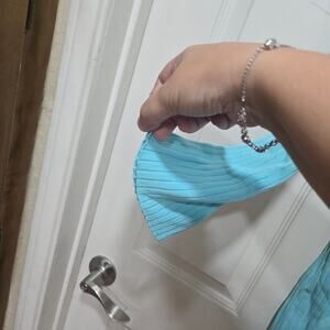 Line & Dot ribbed long sleeve sweater dress in aqua blue.