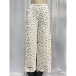 Line & Dot 'Bowen' Cream Polyester Crocheted Pants Size M: a crocheted design and wide leg.