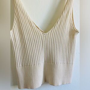 Stylish ribbed tank top. Deep V-neck design. Perfect for layering.