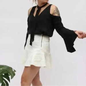 Line & Dot Cupro Cold Shoulder Black Top Tie Neck Women’s Size S NEW