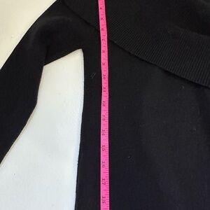 Beautiful elegant black sweater dress form fitting and ribbed. Very flattering. I'm a XL and was able to wear this as the material is stretchy. Goes off the one shoulder. Pre-worn 2x & in excellent condition. No stains or tears.