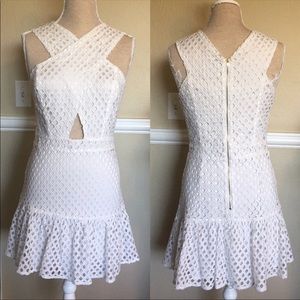 Crisscross eyelet dress. Zipper closure. Mid thigh length. EUC. Great for vacation, summer dress, brunch