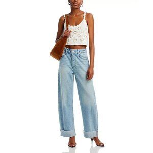 Line & Dot Fontana Crocheted Eyelet Cropped Top Womens Size M Cream Scalloped