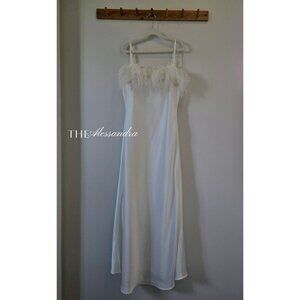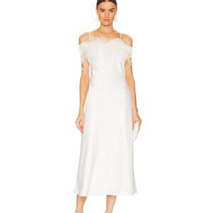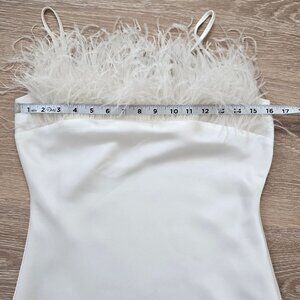 Line & Dot Kimi Dress Size Medium Feather Trim Satin MSRP $184 New Without Tags