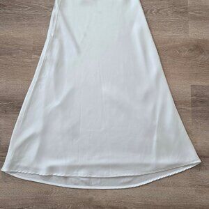 The Kimi Dress from Line & Dot is crafted in smooth, off-white satin with a subtle sheen that catches the light beautifully. It has a flattering straight neckline framed with soft ostrich feather trim that adds texture and a touch of drama. The silhouette is simple and elegant, falling smoothly with a slightly fluid drape. Adjustable shoulder straps give flexibility for the fit, and the dress is fully lined for comfort and coverage. Perfect for nights out, special events, or when you want a standout piece with a modern, feminine edge.