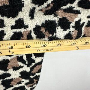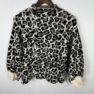 Line & Dot Leopard Sweater Women L Mock Neck Balloon Sleeve Animal Print Chic