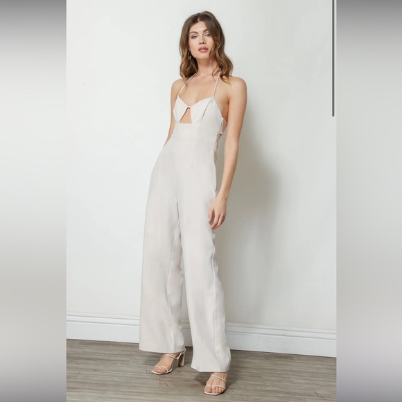 Step out in style with this elegant cream jumpsuit. Perfect for any occasion, it offers a chic and sophisticated look.