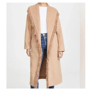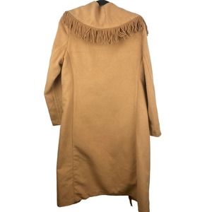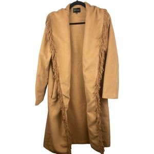 Line & Dot Linda Small Fringe Wool Blend Longline Tan Brown Coat Jacket Cardigan