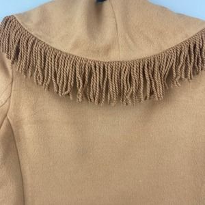 Excellent preowned condition. Beautiful camel color. Fringe all around the collar and hem. Longline formal overcoat.