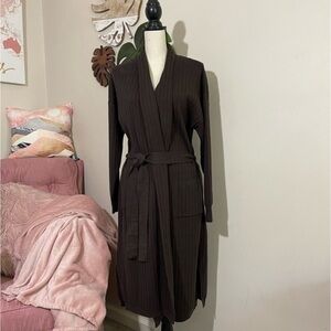 Line & Dot Long Belted Ribbed Cardigan in Brown Sz. Medium - NWT