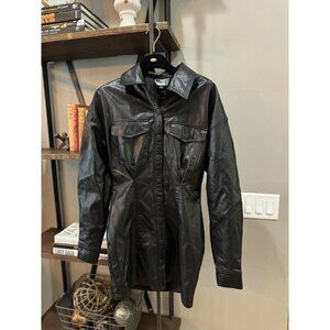 Line & Dot Lou Faux Leather Mini Shirt Dress Black Womens Size Small