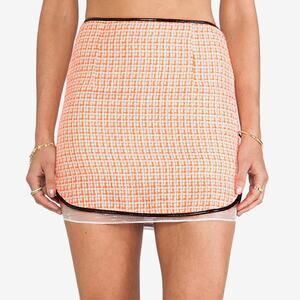Line & Dot Madame Beverly Mini Skirt Size M Orange Fanda Tweed Mesh Trim Preppy