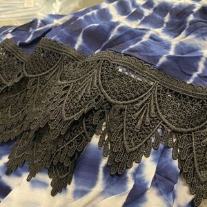 Line & Dot Maxi Dress Womens Size Small Bonheur French Tie Dye Blue Boho Artsy