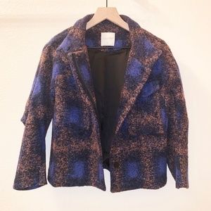 Line & Dot navy brown plaid wool jacket with pockets on each side. Brand New. Please see images for details.