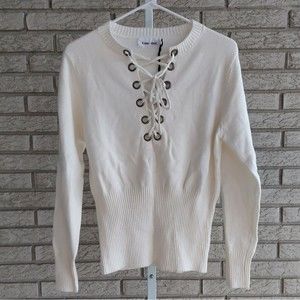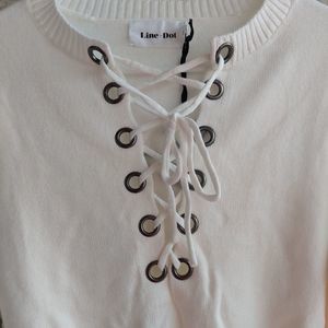 NWT off-white sweater with lace up front in size medium by Line & Dot