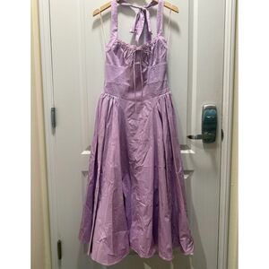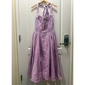 Line & Dot Purple Halter Midi Dress Smocked Bodice Open Back Size S NWOT