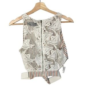 Line + Dot Red & Blue Barber Stripe High Neck Crop Tank Top S
