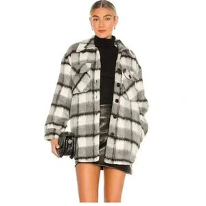 Line & Dot Revolve Harrison Black/Grey Jacket Brushed Flannel Shacket Sz Small