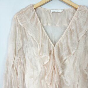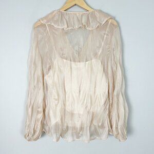 Line + Dot Ruffle Blouse Sheer Ethereal Fairy Whimsical Size Large Women's