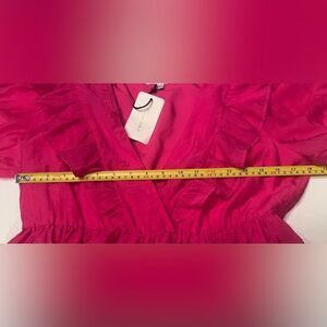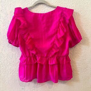 Line & Dot Ruffle Blouse Size Large Pink Fuchsia V-neck Ruffles Peplum Neck New