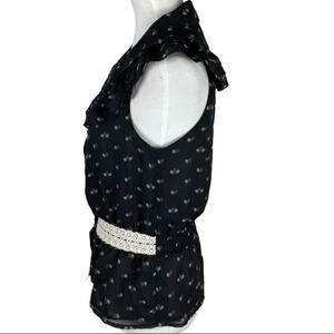 Line & Dot Ruffled Chiffon Peplum Top Size Small