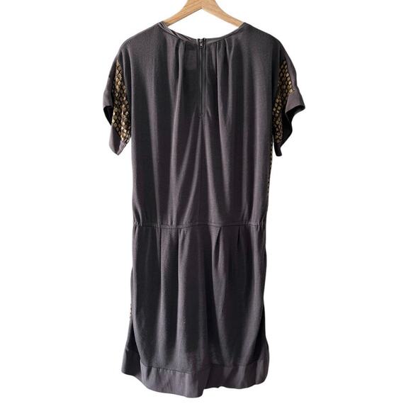 Line & Dot Silk Casual Geometric Print A-Line Dress in Gray/Gold Size M