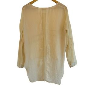 Line & Dot Women's Mixed Media Silk Highlow Blouse Nude Tan Laginlook Modern