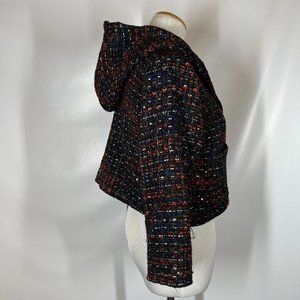 Line + Dot Size S Cropped Tweed Button-Front Jacket Hooded Metallic
