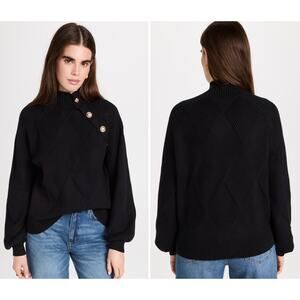 Keywords: Line & Dot Stevie sweater, black mock neck sweater, ribbed knit top, gold button sweater, size large sweater, designer knitwear, elevated basics, black winter sweater, stylish office outfit