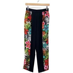 Line & Dot Tropical Floral/Leaf Silk Tapered Leg Cropped Pants size XS NWT