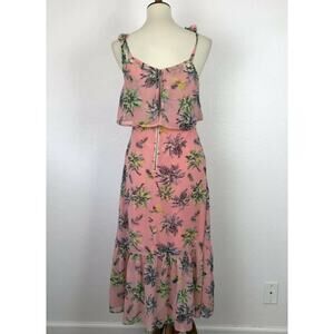 Line + Dot Tropical Print Ruffled Midi Tank Dress