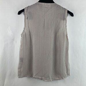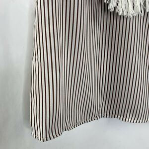 Line & Dot White Brown Stripe Cowl Neck Tassle Trim Blouse NWOT Size XS