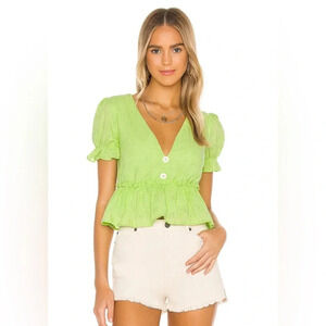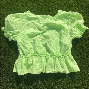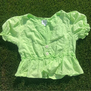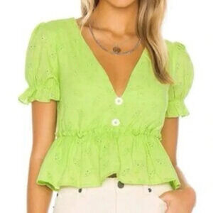 Line & Dot Willow Embroidered 100% Cotton Cropped Puff Sleeve Ruffle Trim Top M
