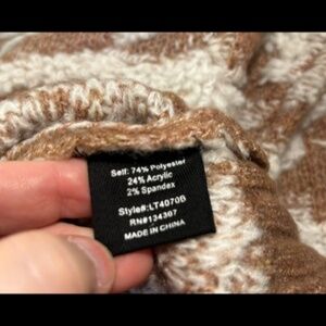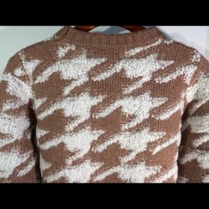 Line & Dot x Revolve Houndstooth Plush Sweater Cream/Toffee Brown Size S - NWT