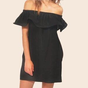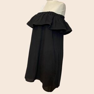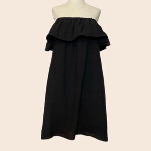 Line & Dot Black Concorde Ruffle Mini Linen Dress Size Large