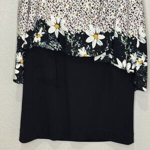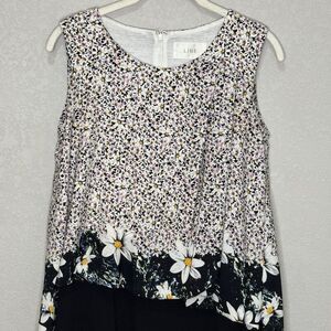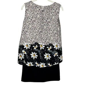Line Dress Womens Medium Black White Floral Sleeveless Layered Daisy Print A-Line