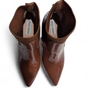 Line NewSteve Madden Shine Boots Cognac Pointed Toe Block Heel Slip On 9.5