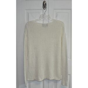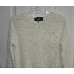 Line Women's Round Neck Open Knit Vented Sides Sweater in Ivory Small MSRP $89