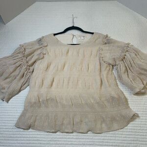 Line and Dot Cream Ruffle Blouse. Size M. Romantic. Neutral. Feminine. Coquette